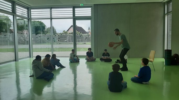 An zwei Tagen im Juni erkundeten die Schülerinnen und Schüler des SBBZ Lernen Kißlegg zusammen mit Schlagzeuger und STOMP-Mitglied Dominik Schad die Welt des Rhythmus mit Bodypercussion und Alltagsgegenständen.