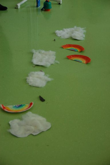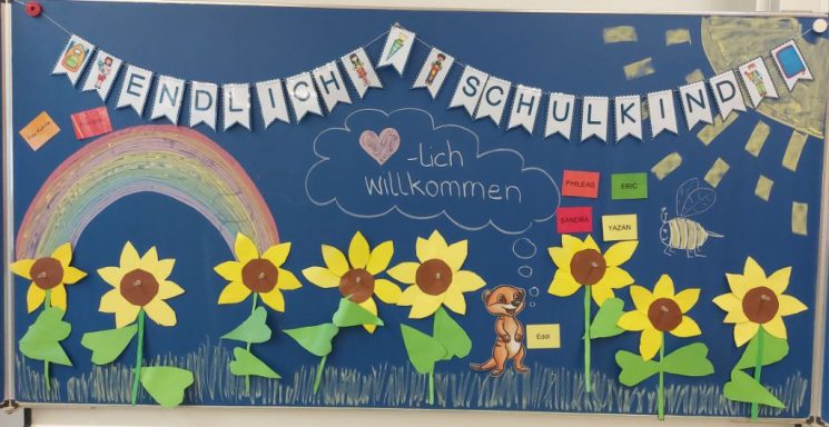 Ganz schnell war der erste aufregende Vormittag vorbei und die Kinder gingen stolz mit ihren Schultüten und einem schön gestalteten Regenbogen, den sie von ihren Paten erhalten hatten, ins Wochenende.