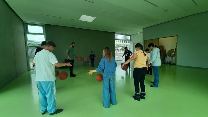 Dank des Förderprogramms „Lernen mit den Künsten“ des Ministeriums für Kultus, Jugend und Sport konnten alle Kinder und Jugendlichen der Schule an beiden Tagen zunächst wichtige Grundlagen der Bodypercussion erarbeiten, um dann mit Bällen, Besen und Eimern kleine Rhythmus-Stücke einzustudieren. Wichtig dabei waren Körperwahrnehmung, Selbsterfahrung und die Arbeit in der Gruppe. Alle konnten tolle, wertvolle Erfahrungen sammeln und hatten jede Menge Spaß zusammen.